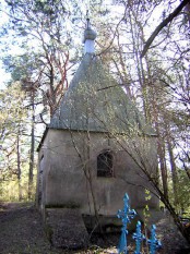 Несмотря на мои теплые чувства к деревяни, выдающейся назвать её не могу, хотя и не дрова. Если проехать за неё в лес – отыщется католическое кладбище, а на нем – железобетонная часовня любопытной конструкции, тоже заслуживающая легкого внимания.