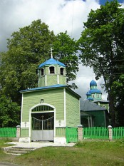 Деревянная с примитивным решением нижней части, но с забавной комбинацией восьмериков и колоколенкой.