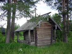 Маленький шедевр. С рождения была часовней "на пожнях", т.е. в поле, в деревню перенесена около 40 лет назад, отреставрирована по правилам и чудом уцелела до наших дней. upd: Всё же сгорела в сентябре 2015