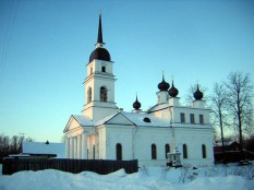 Арх. Щурупов. Почти восстановлена, храм вполне типовой, очень тонкая высокая колокольня, вокруг много воды. От Дороги Жизни - маленький обелиск неподалёку.