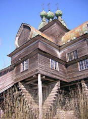 Потрясающий образец деревянной церкви конца XVII века. С фасада - изба на курногах, с алтарной части - неприступная крепость. Вполне приличная сохранность. Рядом - останки каменной. Редкий случай, когда у кого-то, видимо, в последний момент хватило мозгов - оставлено лучшее. Принадлежит Череповецкому музею, всегда на замке.