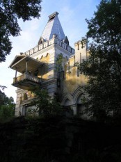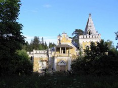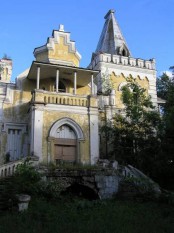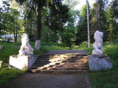 Причудливый эклектичный дом (у местных надо спрашивать "замок"), начавший разваливаться и растаскиваться. Залезать аккуратно, следить за детьми! Пока сохраняются мелкие формы – балкончики, дымоходы и т.п., парадная лестница – просто царская. В запущенном парке – два льва былых времен и симпатичный пруд. Вообще, место было душевное – это чувствуется до сих пор.