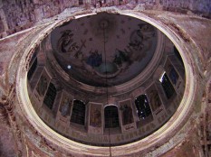 По пути обратите внимание на амбары в Головинских Горках. Церковь средней выразительности, зато под куполом практически сохранилась роспись.