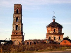 Видна издалека, вблизи - печальное зрелище. Была неплоха колокольня, но срублена примерно на треть. Остальное просто брошено.