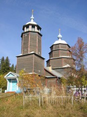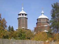 Одна из немногих в области старых деревянных церквей. Сделана сразу под камень, выглядит очень внушительно. Благодаря маленьким и немногочисленным окошкам напоминает острог или сторожевую башню.