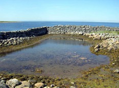 Андреевская церковь привезена сюда петровскими гвардейцами во время визита императора на Соловки в 1702 г.. Позже построены амбар и столовая из валунов. Но ещё до образования скита здесь была устроена первая в России искусственная гавань – тоже из валунов, конечно. Остров славен своими лабиринтами и почти тундровым видом, но об этом – в другом месте.