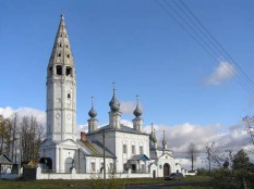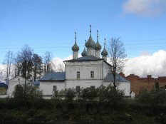 Две с половиной церкви (половинка – заброшенный недострой), выглядит всё это не по-монастырски – просто пара церквей, обычная в этих краях. Забавно, что меньшая церковь практически повторяет формы большей – как матрешки.
