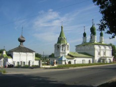 Введенская и Преображенская церкви составляют весьма приятную парочку, хотя выглядят абсолютно разнотипно. Приглядевшись, понимаешь, что все дело в несоразмерно большой деревянной луковице, венчающей Введенскую. А в остальном - стиль выдержан.
