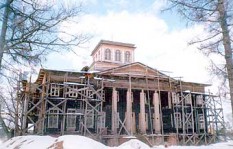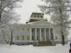 Деревянная, многократно горевшая, сейчас в очередной раз восстановлена путем обшивки свежими досками обугленного каркаса. Одно время энтузиасты-набокофилы хотели устроить в ней музей, т.к. В.В.Набоков, являясь племянником хозяина, частенько бывал там в детские годы. Сбылось это только после советской власти, музей работает, но от Набокова там практически ничего - усредненное дворянское гнездо. Да и округа сильно изменилась не в лучшую сторону.