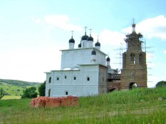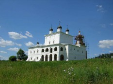 Грандиозный белокаменный собор, частично, к сожалению, забеленный (работы ведутся до логического конца). Внутри пока пусто, но объемы впечатляют. Сооружение очень сложной конструкции, архитектор, как обычно, неизвестен, построено на века. Ближайший прототип, по описаниям, Успенский собор в Перемышле, нынче по объективным причинам не может служить объектом для сравнения.