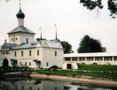 Печальное место – здесь в Смутное время просвещенные европейцы-поляки убили больше тысячи русских варваров - монахов и посадских жителей, укрывшихся в этих стенах. Сейчас это мощный, процветающий, отреставрированный монастырь, с комплексом красивейших строений, прудом, цветником и обилием посетителей. К сожалению, бОльшая часть территории недоступна для нас, посторонних. Распространена торговля освященными продуктами питания - медом, минералкой (у монастыря своя скважина), выпечкой (мы были в пост, освященных шашлыков не предлагали).