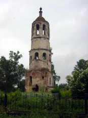 Маленькая аккуратная церковь, на вид - предшественница творений Н.А.Львова, несмотря на принадлежность к эпохе барокко, которое Львов недолюбливал. Диковатая колокольня - от другой, несохранившейся церкви.