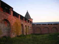 Сам кремль не бог весть, стены мелкие, башни тощие, зато цел. Но даже без стен и башен он был бы достоин высокой оценки за Никольский собор – один из двух соборов на территории кремля. Он тоже выглядит свежо, невзирая на почтенный возраст, и напрочь затмевает гораздо бОльший по размеру, но неинтересный Предтеченский собор. Вообще, на фоне общего запустения в Зарайске кремль резко выделяется в лучшую сторону.
