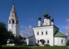 Остались невысокие стены (крепостью не был), храм (очень неплохой, даже для Суздаля) и колокольня – довольно обычный шатер, всё слегка в упадке, но на высоком берегу.
