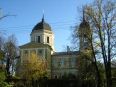 Вполне городской по размеру классицистический храм на горе, довольно типовой. В приход, как я понимаю, включен санаторий ФСБ "Отрада", что в усадьбе Орловых.