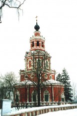 Шедевр нарышкинского стиля (архитектор - Я.Бухвостов), незабываемо оригинальная композиция, удачное расположение - издалека видна и со "своего", и с противоположного берега Москва-реки. Вся в белокаменной резьбе. Несколько смущает обширная стройплощадка почти у стен церкви, тем более, что на следующем участке уже построено внушительное здание новодворцового типа (впрочем, не без вкуса).
