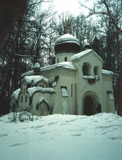 Небольшая, соединившая в себе достоинства разных русских архитектурных школ - псковской, новгородской, московской, суздальской (проект В.Васнецова). Иконостас выполнен им же и ещё тремя оригинальными мастерами - Репиным, Врубелем и Нестеровым, причем каждый взял себе примерно четверть и расписал в присущей ему манере. Что вышло - можно себе представить:-).