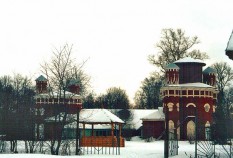 Готический конный двор - люблю я такие вещи. Строений несколько, но все они за забором на территории детского лагеря, закрытого по случаю зимы. Однако, содержатся в порядке.