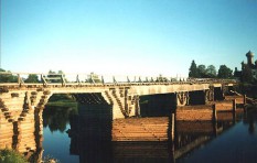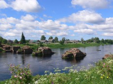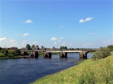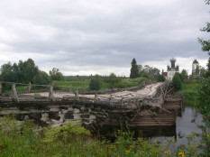 Самый внушительный из ряжевых мостов, виденных мною. По нему до сих пор не страшно ездить, даже на тяжелых тракторах. А уж с точки зрения эстетики – любой бетонный и близко не лежал. В таком виде его воспроизводят с 18-го века. Под мостом – река Кена. Upd 2023: больше не ездят, состояние критическое. Upd 2024: мост разобран, остались только ряжи.