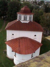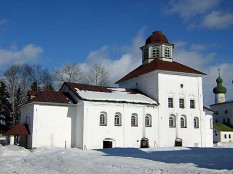 Самая обглоданная церковь центра города, более напоминает обычное музейное здание, каковым и является. В ней проводятся выставки и работает лавка сувениров (знаменитая каргопольская глиняная игрушка - на любителя).
