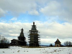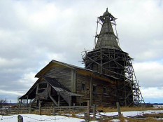 При мне всё дерево было в лесах, специалисты говорят, что всё делается правильно, но очень медленно – успели бы… А кирпичная церковь в данной ситуации только портит – уж разобрали бы её до конца, что ли…