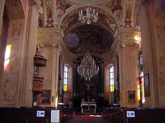 Великолепное сооружение конца 16 в., не закрывавшееся, как уверяют, с тех пор ни на один день. Внутри – сдержанность и аскетизм, присущие католицизму: золото, хрусталь и прочие аксессуары не оставляют сомнений в правильности выбранного пути. Стоящая рядом башня не имеет к костелу отношения, о ней – в заметке о замке.