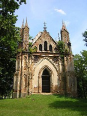 Фамилия известная, и усыпальница сделана не абы как, а очень готично. И реставрировать её собираются, как я понял, по правилам, хотя некоторые фрагменты, упавшие с крыши, валяются под ногами. Снова не обойтись без слова «романтично» - умели люди создавать настроение…