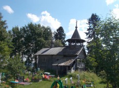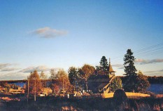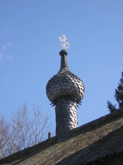Деревянная. В сочетании с озером и видом за озеро - очень хорошо, кто-то в ней должен жить сказочный (впрочем, это зависит от взгляда на религию).