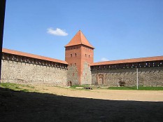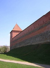 От Лидского замка остался только периметр стен и башня. Снаружи выглядит внушительно, но на осмотр достаточно 10 минут. Судя по плакату, внутри, на голом плацу, проводятся театрализованные акции.