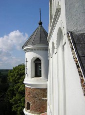 Одно из самых ярких впечатлений. Стиль и формы те же, что и у Михайловской церкви в Сынковичах (см.), но отделка более праздничная. Учитывая крепостное назначение, сынковичская церковь более адекватная. Хотя, может быть, там просто отчетливее ощущается почтенный возраст. Открывший для нас храм реставратор-пономарь (так он представился) пожаловался на Ватикан, осыпающий деньгами конкурентов, и разрешил везде полазать. Ощущения, действительно, как в крепости – винтовые лестницы, толстенные стены…