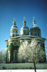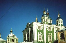 Строился в три приема (первая версия рухнула в процессе, во второй провалился купол...), получился на загляденье. Сочетание старорусского и барочного стилей дало незабываемую композицию. Внутреннее убранство не уступает внешнему. Пропавшая в 1940 г. икона Одигитрии Смоленской заменена на список XVI в.. Вместе с примыкающим Богоявленским собором и Архиерейскими палатами составляет ансамбль Соборной горы, красивейшего места Смоленска.