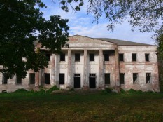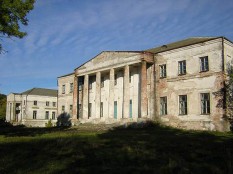 Классицистический дом с одним флигелем (арх. Кваренги), всё в диком запустении, хотя и практически цело. Неужели хотя бы сельхозуправление или милицию туда не вселить? Парк не читается.