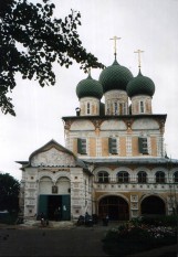Огромный комплекс, очень богато украшен, фрески Никитина (а как же), весьма многолюдно. Построен с использованием стен старого храма Бориса и Глеба, давшего название этой половине Тутаева (пора уж и вернуть имя!).