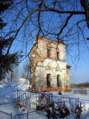 Если исключить неинтересную колокольню – наверное, был замечательный ансамбль. К сожалению, лишь колокольня и осталась цела, Покровский храм обглодан, хотя форма читается, от другого оставлена одна стена (коровник достроили?).