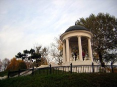 К сожалению, новодел 1960-х, но придумано и поставлено очень уместно. Так и представляешь себе упомянутого драматурга, который спешит, пока не догорел прекрасный закат, зафиксировать на бумаге пришедшую на ум бытовую чернуху... Впрочем, это я для красного словца.