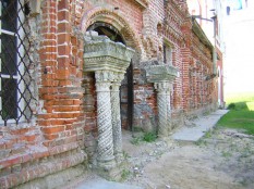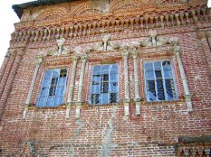 Отовсюду в городе и даже его окрестностях видно этот мощный комплекс с двумя колокольнями. Собор слишком помпезный, свежеотреставрированный, церковь же, напротив, скромная и просит ремонта. Главное украшение церкви – ворота, напомнившее мне нечто египетское, и оформление окон. Рисунок на изразцах не повторяется, но это, по-моему, новодел – интересно, повтор утраченного, или свежая мысль?