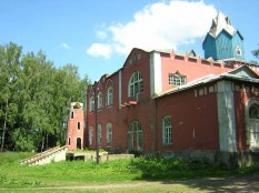 Подчеркнутый модерн, очень неожиданный вид. Загляните за дом – кто объяснит назначение отдельно стоящей башни с перилами, получит моё человеческое "спасибо". Сейчас в здании – управление конезавода, сквозь окна видны конские портреты и кубки, обстановка, думаю, не беднее, чем при бывших хозяевах…