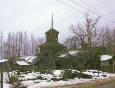 Фантастический деревянный модерн, частично сгоревший (в оставшемся продолжают жить люди). Совмещает черты церкви, крепости и барака. Есть мнение, что изначально это - кирха при стекольном заводе.