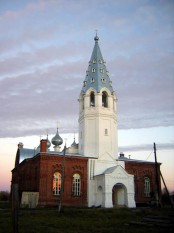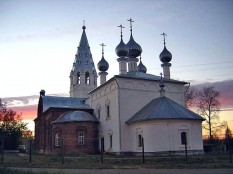 Была бы замечательна (традиционное пятиглавие, дивный шатер), если бы к зоолетию Романовых её не обстроили двумя неуместными приделами. Испортили хорошую вещь. Топоним начинается на Ё!