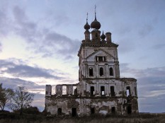 Катастрофически повреждена и брошена, что для этих мест нехарактерно. Произведение очень сильное – почти тотемский храм в 4 этажа кораблем. Хотел бы я увидеть её в целости…