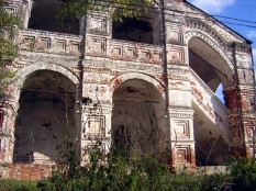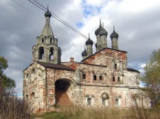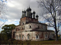 Одна из лучших в области, хотя там трудно чем-либо удивить... Двухэтажная, с абсолютно разными объемами на этажах, высоким оригинальнейшим крыльцом, шатровой колокольней и пятиглавием. Всё перечисленное превосходно, а всё вместе, пожалуй, нигде больше не встретишь. Непохоже, чтобы кто-то ею занимался, но сохранность неплохая.