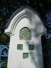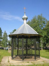 Можно назвать это и культовым местом, т.к. на яме, в которой сидел при Годунове Романов, воздвигнута решетчатая часовня. Но, скорее - это парк по-ныробски, где не очень много мест для прогулок без конвоя. Столбы ограды несут на себе изразцы с растительным узором, сильно напоминающим двуглавого орла. Есть, видимо, какой-то тонкий момент... А сама яма видна вся до дна, не так уж и глубока, бывали ямы и пострашнее.