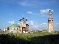 Центр Старого города, брошенного много лет назад. Сейчас здесь только музей и малопосещаемый комплекс строений. Всё это пространство организует собор, стоящий входом к Каме, а к приезжающим - алтарем (раньше в Усолье подъезжали преимущественно водой). Собор великолепен ("Строгановский" стиль), а колокольня с примыкающими к ней торговыми рядами - в традиционном советском виде.