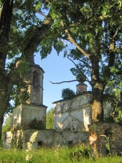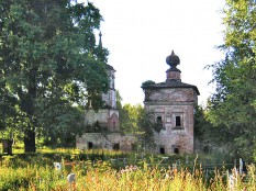 Храм XVII в., оставшийся от бывшего здесь монастыря. Формы отчетливы и очень хороши, хотя церковь давно никому не нужна. Разросшиеся деревья дополняют картину. С мыса - камские пейзажи и вид села, чем-то напомнило Плес на Волге.
