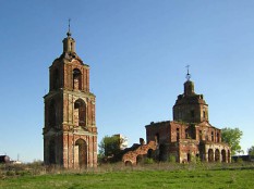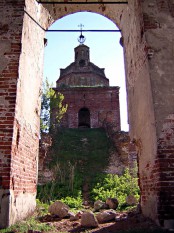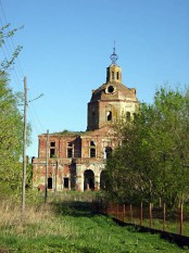 Одна из лучших руин, виденных мною. Наверное, её ещё можно спасти, но надежды мало (может, ликеро-водочный завод возьмется? Пока он сбрасывает отходы производства рядом с церковными стенами). Ни на что не похожая композиция – длинная лестница из-под отдельно стоящей колокольни на второй этаж. Авторство приписывается М.Ф.Казакову, и я склонен в это верить. Рядом, в бывшем флигеле, устроена Никольская церковь.