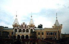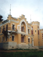 Хозяин – владелец Рязанской ж.д. – заказал строительство малоизвестному ещё Ф.Шехтелю, и тот развернулся в полный рост. Эклектика, в основе которой лежат псевдоготические приемы, плюс более традиционные мелкие формы – беседки, лестницы, арочный мост через овраг. Довершает ансамбль кремлевская стена с зубцами, отгораживающая дом от проезжей дороги. В результате строительства Дервиз разорился, а Шехтель прославился. Сейчас в усадьбе процветающий санаторий, полным ходом идёт восстановление с использованием новых прогрессивных материалов – не испортить бы... А парк так себе, и за спиной главного здания в нем стоят статуя оленя с отшибленным рогом и статуя Ульянова.