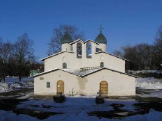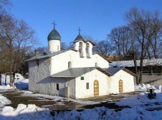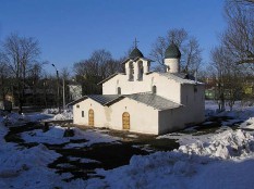 Нечастый вариант двухкупольной церкви – в ней, собственно, два равнозначных престола, два отдельных входа и т.п., только звонница одна, правда, тоже рассчитанная на раздел имущества, в случае чего. Возможно, некоторые церкви в центре Пскова можно пропустить ввиду их некоторой похожести, но в этот угол надо зайти обязательно.