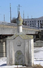 Творение Щусева, попытка построить нечто модернистское в архаичных формах. Вышло малоубедительно, да ещё мост построили – оказалась она почти под мостом.