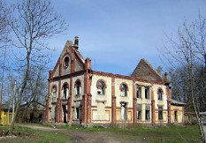 Руины перестроенного в жилой дом костела выглядят очень привлекательно. Стоит напротив кирхи, через участок от православного кладбища с церковью. Веротерпимость в пределах одного квартала потрясающая.