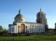 Сельский классицизм с вывертом, здание несколько смахивает на вокзал, есть приятная асимметрия, в общем, нетиповая церковь. И раскрашена весело. Опять же, медальоны по стенам – очень необычно.